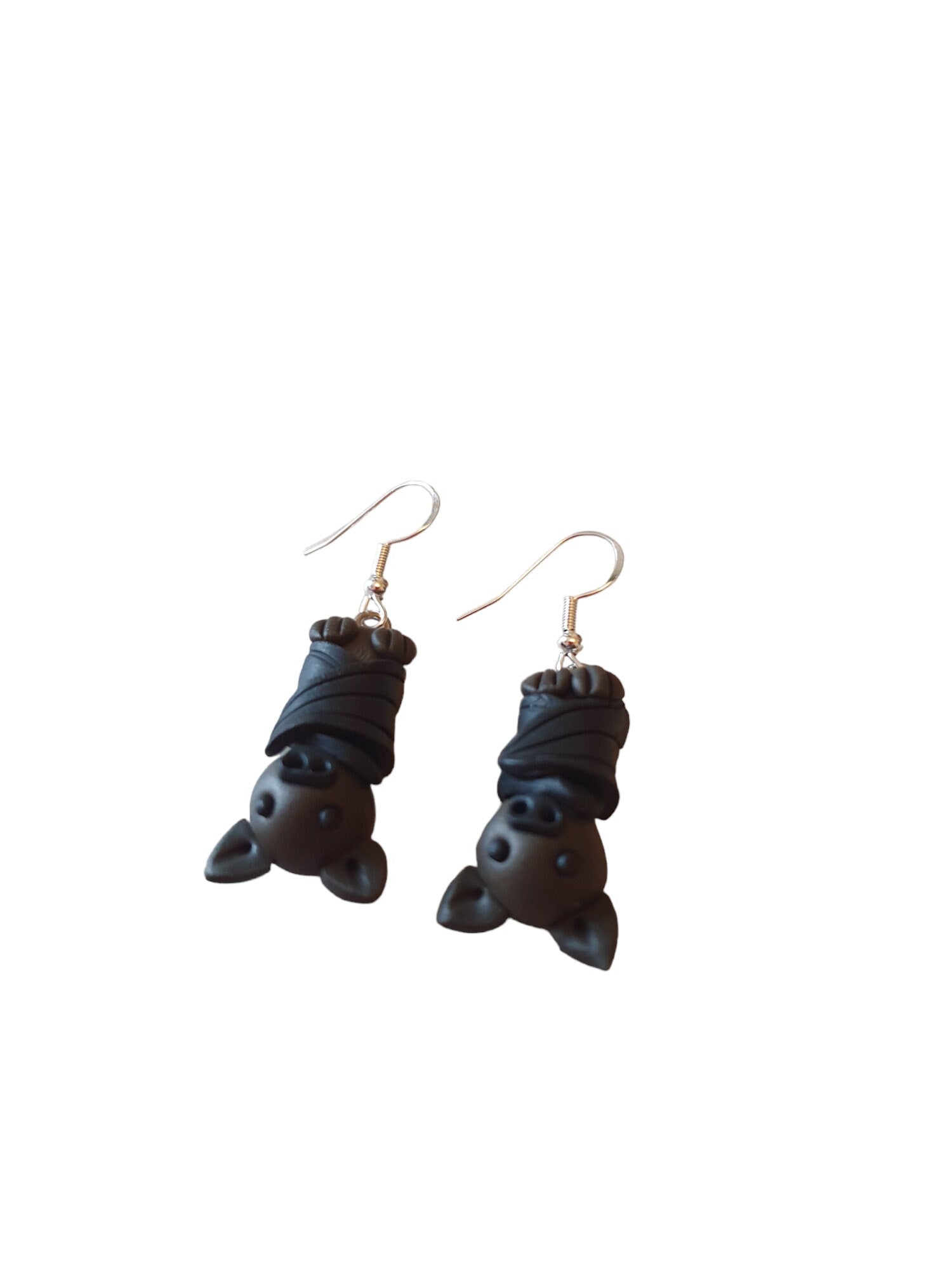 These handcrafted earrings feature sleepy bats handmade from Fimo. It comes with sterling silver ear wires.